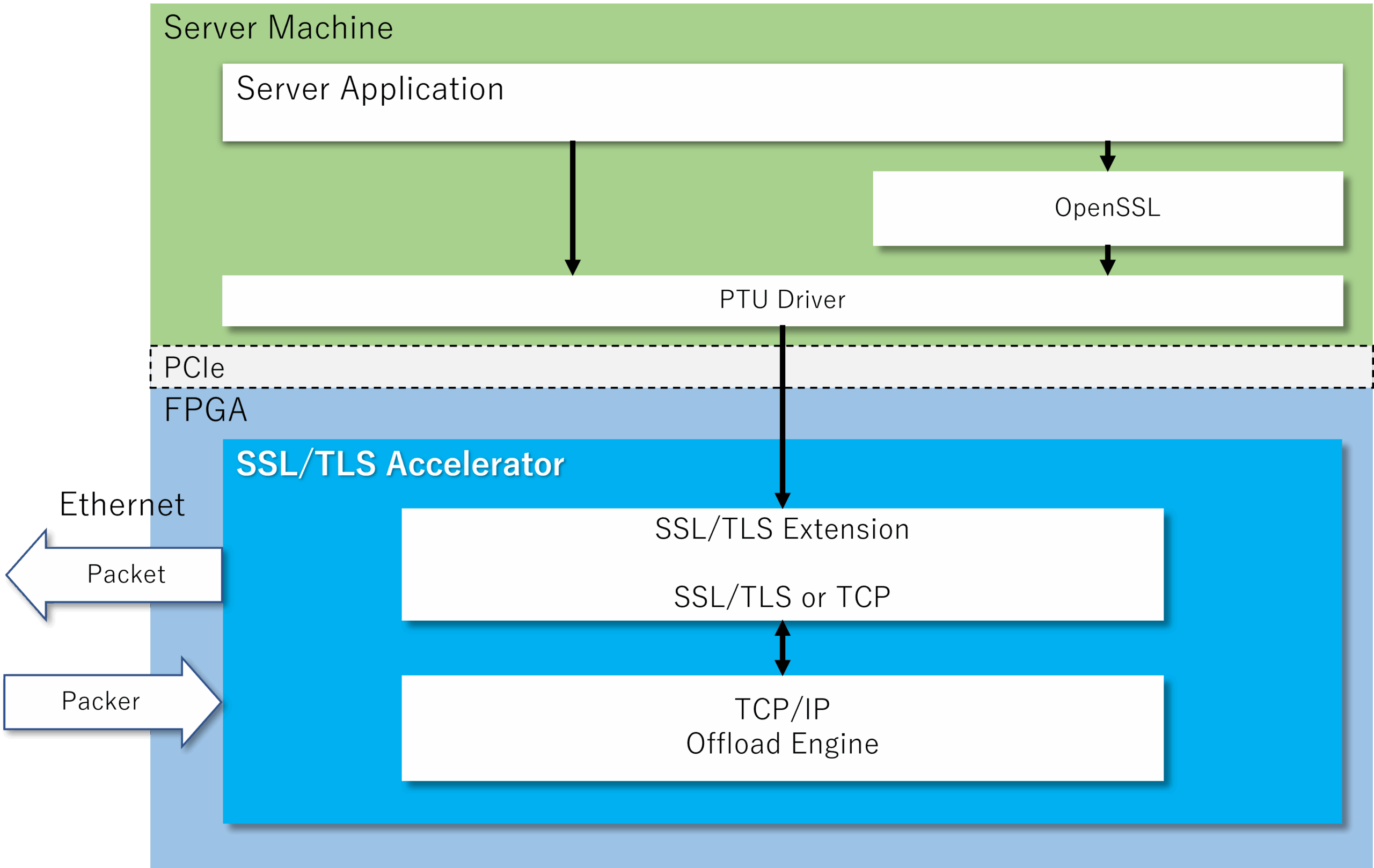 Furthermore, since the PTU supports all protocols beyond SSL/TLS, it enables transmission and reception from the FPGA board’s Ethernet port equivalent to that of a NIC.